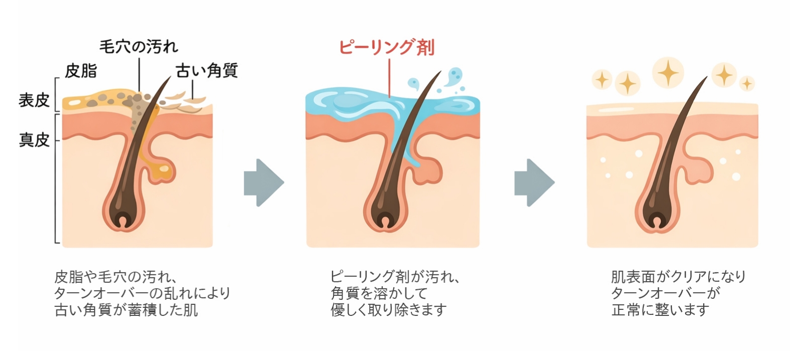 | 痛み | 酸の塗布による、軽いピリピリ感を感じることがあります。 |