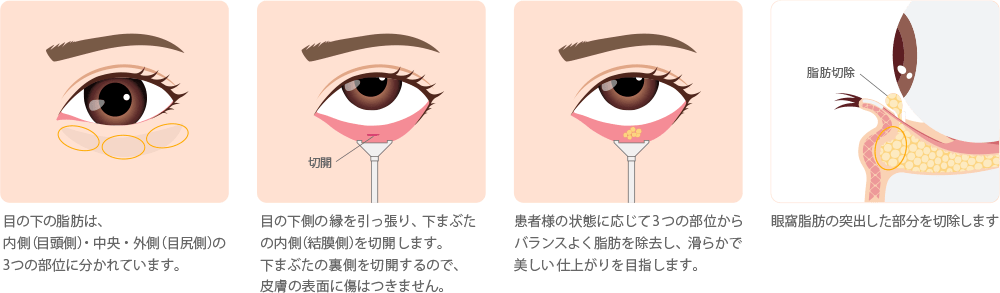 目の下クマ・たるみ取り(経結膜脱脂術)の特徴